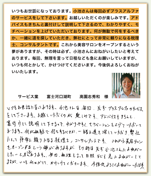 私は山梨県南都留郡で中小企業の節税対策を本気で考えている税理士の小池織嗣と申します。